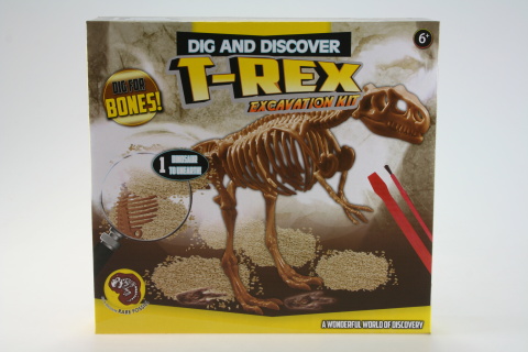 Sada pro malé archeology obsahuje: hliněný kvádr, kosti T- Rexe, štecec na čištění, špachtle, kladívko. Věk 6+