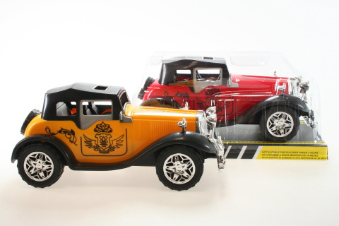 Historické auto na setrvačník. Rozměry cca 30 x 13 cm. Materiál plast. Věk 3+.