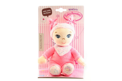 Tak krásně měkká a hebká. Tělíčko této mazlivé panenky je celé ušito z heboučké látky. Bude skvělou kamarádkou do postýlek pro ty nejmenší holčičky ve věku 0-12 měsíců. Má roztomilý vyšívaný obličejík, který je rovněž krásně měkoučký a čepičku s legračními oušky. Krk jí zdobí šátek s motivem oblíbených Baby Annabell oveček. Uvnitř má schované chrastítko, se kterým si děti budou nadšeně hrát a zároveň je hezky uklidní. Věk 0+