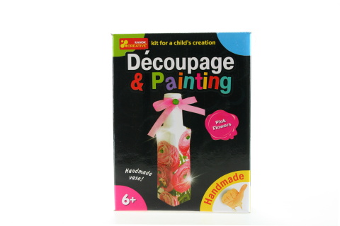 Vyzkoušejte oblíbenou ubrouskovou metodu – dekupáž. Vytvořte si krásné dekorace do bytu nebo vyrobte dárek kamarádům. Sada obsahuje vše potřebné (skleněnou vázu, ubrousky, barvy, štětec, lepidlo, ozdoby atd.) Rozměr balení cca 22 x 17 x 5 cm. Věk 6+. VYROBENO V EVROPĚ.