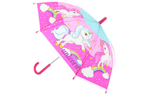 Manuální deštník s motivy jednorožců. Rozměry rozloženého deštníku cca 60 x 60 x 60 cm. Rozměry balení cca 60 x 8,5 x 4 cm. Baleno v igelitovém sáčku.