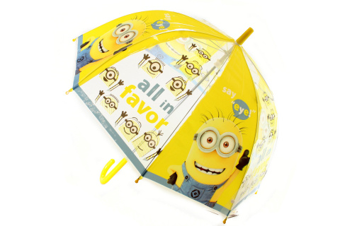 Plastový deštník s motivem Mimoňů. Délka složeného deštníku cca 60 cm. Průměr rozloženého deštníku cca 70 cm. Baleno v celofánovém sáčku. Jedná se o funkční předmět. Věk 3+