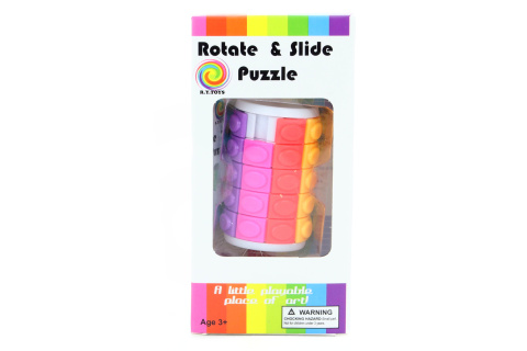 Plastový hlavolam ve tvaru válce. Pomocí otáčení a posouvání lze pohybovat částmi hlavolamu. Rozměr hlavolamu cca 6,5 cm. Rozměry balení cca 14 x 7 x 5,5 cm. Věk 3+