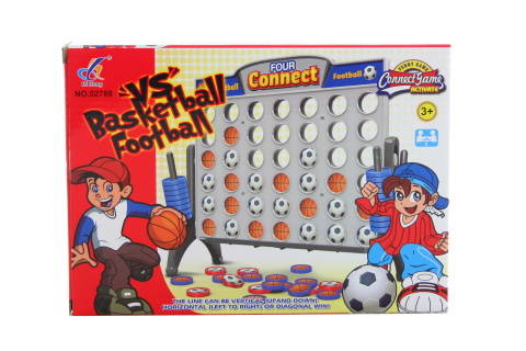 Hra pro dva hráče na motivy piškvorek. Stolní hra ve které jde o to spojit k sobě 4 kolečka stejného symbolu (basketbal, fotbal). Rozměry balení cca 24 x 17 x 4 cm. Rozměr stojanu cca 16 x 16 cm. Věk 3+