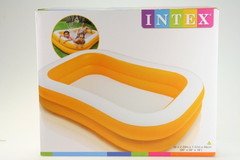 Nafukovací rodinný bazén o rozměrech 2.29m x 1.47m x 46cm. Bazén je v barvě mandarinky. Věk 3+