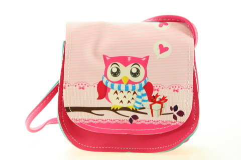 Růžová taška se sovičkou. Rozměry cca 17 x 15 cm. Výrobek není hračka, je určený k dekorativním účelům.