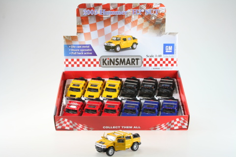 Kinsmart 2005 Hummer H2 Sut – Model auta v měřítku 1:40.Kovové auto s otevíracími dveřmi v kombinaci s plastovým spodkem.Na zpětné natažení – pull-back.Velikost modelu cca 13 cm.Věk 3+