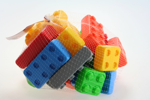 Kostky v sáčku o dvou velikostech – 5,5 cm X 5,5 cm X 3 cm a větší o rezměrech cca 11,5 cm X 5,5 cm X 3 cm.Věk 3+