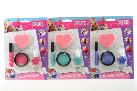 Sada obsahuje: křídu na vlasy s houbičkou, lesk na rty a lak na nehty v odpovídající barvvě. Rozměr balení cca 15,5 x 20,5 cm. Věk 6+