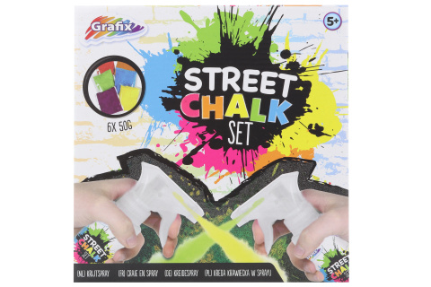 Tato sada kříd ve spreji obsahuje 2 rozprašovače, 6 sáčků barevného křídového prášku a 2 šablony. Rozměry balení cca 21 x 21 x 7 cm. Věk 5+