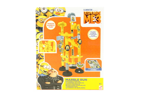 Kuličková dráha s motivem Mimoňů. Obsahuje 37 dílků, 15 nálepek a kartičky postaviček k upevnění. Materiál plast. Rozměry balení cca 25 x 20 x 7,5 cm. Věk 5+