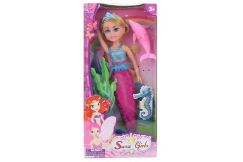 Mořská panna blondýnka s delfínem. Rozměry panenky cca 33 x 6 cm. Rozměry balení cca 18 x 38,5 x 6 cm. Věk 3+