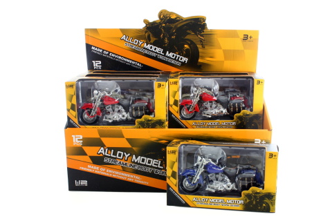 Model motorky v měřítku cca 1:12. Materiál kov a plast. Rozměry motorky cca 16 x 8 x 5 cm. Rozměr balení cca 21 x 12 x 7 cm. Věk 3+