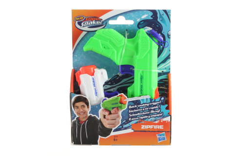 Zaútočte vodním blástrem ZipFire! Je vybaven rychlouzávěrem pro rychlé vypouštění vody. Vyjměte spoušť k výplachu vody, není potřeba žádné pumpování. Vodní blástr pojme 97 mililitrů vody. Věk 6+