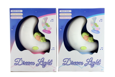 Lampička měsíček, která mění barvy a hraje melodie (hudba, zvuky přírody). Rozměry lampičky cca 16 cm. Rozměry balení cca 24 x 17,5 x 6,5 cm. Napájení 3x AAA baterie (nejsou součástí balení). Věk 0+