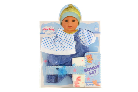 Sada oblečení a doplňků pro panenky. Obsahuje tričko, lacláče o délce cca 21 cm, čepičku, dudlík a plenku. Rozměry balení cca 34 x 32 cm. Věk 3+