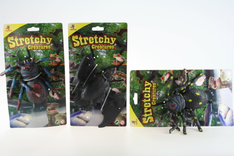 Pavouk gumový o velikosti cca 20 cm X 13 cm na blistru. Netopýr gumový velikost cca 20 cm X 14 cm.Věk 3+