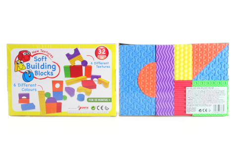 Pěnové měkké kostky – celkem 32 ks. Obsahuje základní tvary, voděodolné a lehké. Rozměry balení cca 24 x 16 x 6,5 cm. Věk 18 měsíců +