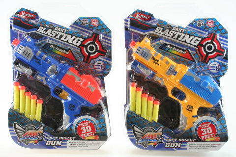Pistole s pěnovými náboji. Obsahuje 5 kusů pěnových nábojů. Dostřel až 9 metrů. Rozměr pistole cca 25 x 15 cm. Věk 6+.