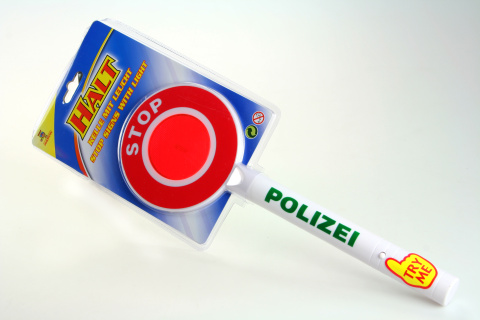 STOP kontrola- policejní terč se světlem. Z jedné strany červené svítící světlo a z druhé zelené. Baterie 2x AA jsou součást balení. Věk 3+