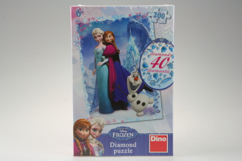 Puzzle Diamond Frozen 200 dílků – vytvořte si originální dekoraci. Balení obsahuje puzzle + lepidlo a 40 kamínků na ozdobu. Pro děti 6+ let.