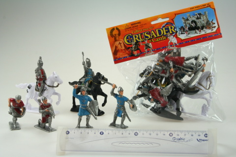 Balení obsahuje 2 plastové koně o velikosti cca 11 cm X 7,5 cm ve dvou barvách,2 rytíře – jezdce na koně – o velikosti 7 cm a 4 rytíře stojící – ve dovu barvách.Věk 3+