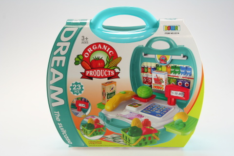 Nákupní sada obsahuje: 1x kufřík o velikosti cca 24x18cm, 7x zelenina, 1x skener, 1x nákupní košík, 1x váha, 1x počítadlo. Věk 3+