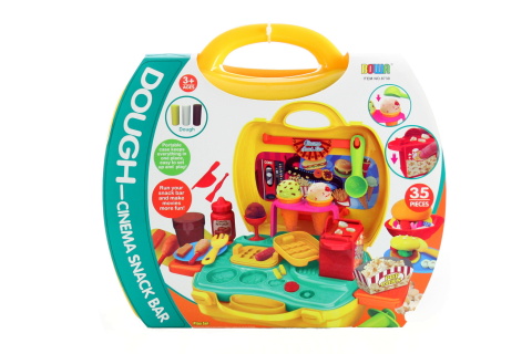 Sada v kufříku obsahuje celkem 35 různých částí do snack baru v kině, včetně barevných modelín. Kufřík je součástí herního setu. Rozměry kufíku cca 24 x 22 x 10 cm.