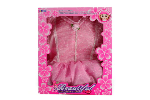 Růžové zdobené šaty pro princeznu v krabici. Materiál polyester. Délka šatů cca 50 cm. Rozměry balení cca 35,5 x 30 x 6,5 cm.