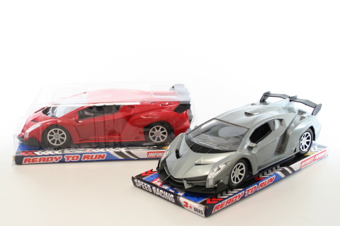 Sportovní auto na setrvačník o rozměrech cca 29 x 12 x 6 cm. Věk 3+