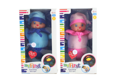 Plyšový usínáček o velikosti cca 22 cm. Po stisknutí bříška svítí. Napájení 2x AA baterie (jsou součástí balení). Rozměry balení cca 27 x 15 x 9 cm. Věk 12m+
