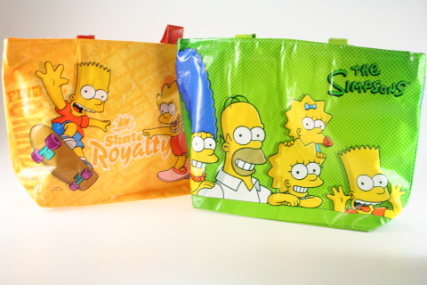 Taška Simpsons o rozměrech cca 47 cm X 33 cm + 28 cm ucha tašky.Pevná taška o tloušťce více jak 100 mikronů.Taška lze uzavřít na zip a ucha lze spojit cvokem.Výrobek není hračka.