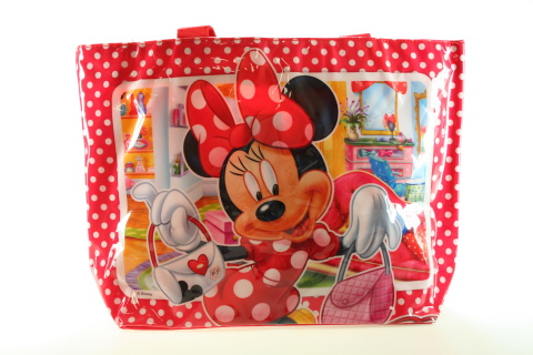 Velká taška s lesklým potiskem Minnie. Kabelka je na zip a má popruhy do ruky nebo přes rameno. Rozměry tašky cca 32 x 45 x 12 cm. Taška není hračka, slouží k dekorativním účelům. Baleno v celofánovém sáčku.