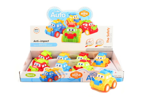 Veselá autíčka plastová na setrvačník. Rozměr autíčka cca 10 x 7 x 8 cm. Rozměr balení cca 46 x 28 x 9 cm. Věk 18 měsíců+